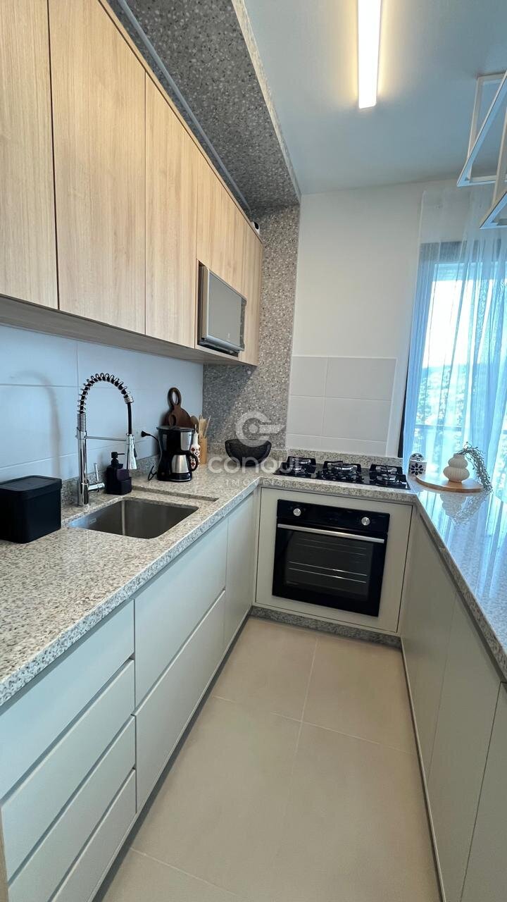 Este apartamento conta com 67m² privativos, distribuídos em 02 dormitórios (ambos suítes), sala de estar e jantar integradas à cozinha funcional, banheiro social, área de serviço e uma charmosa sacada com churrasqueira, ideal para celebrar bons momentos. Conta ainda com 01 vaga de garagem exclusiva (nº 3).