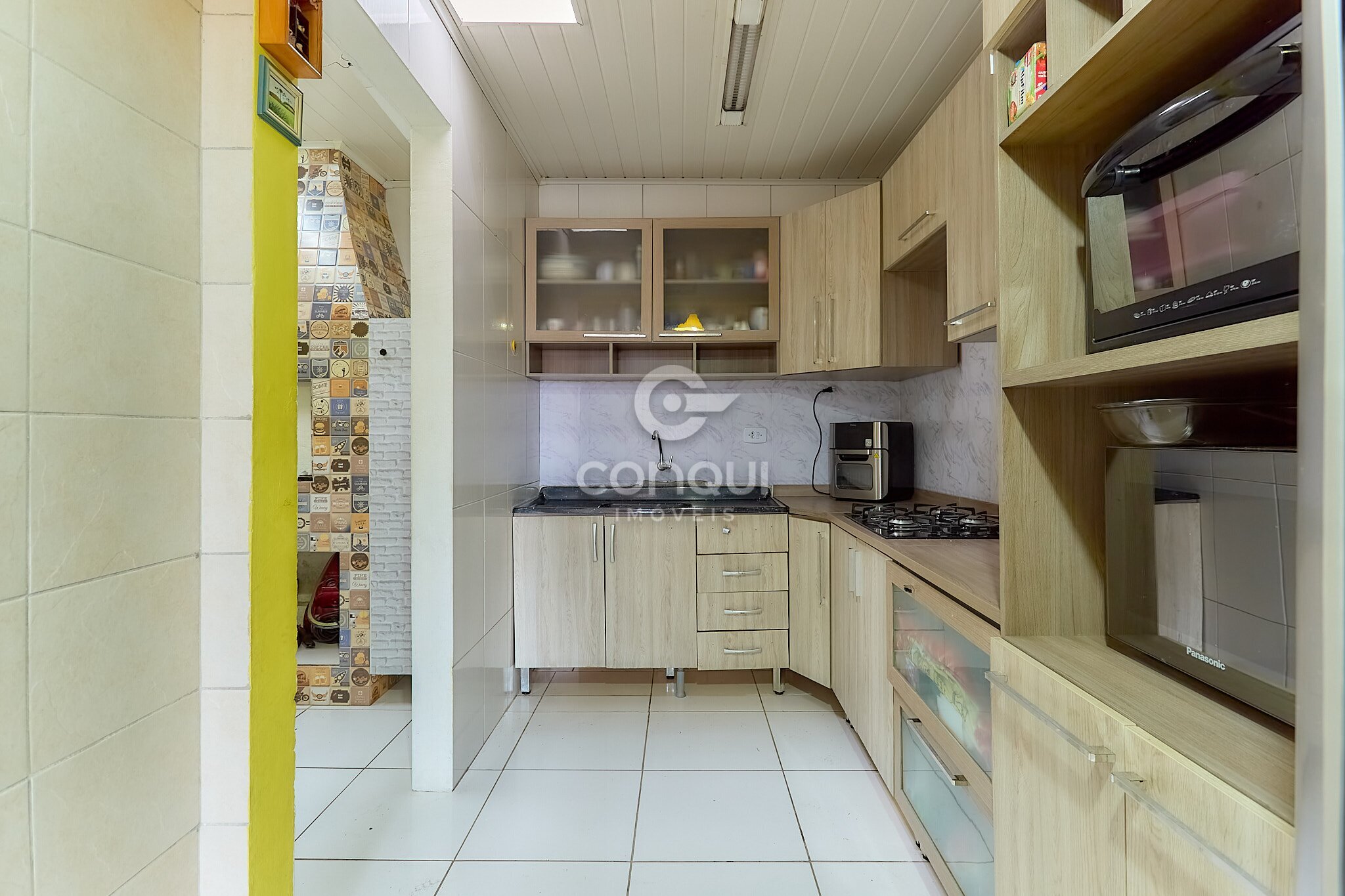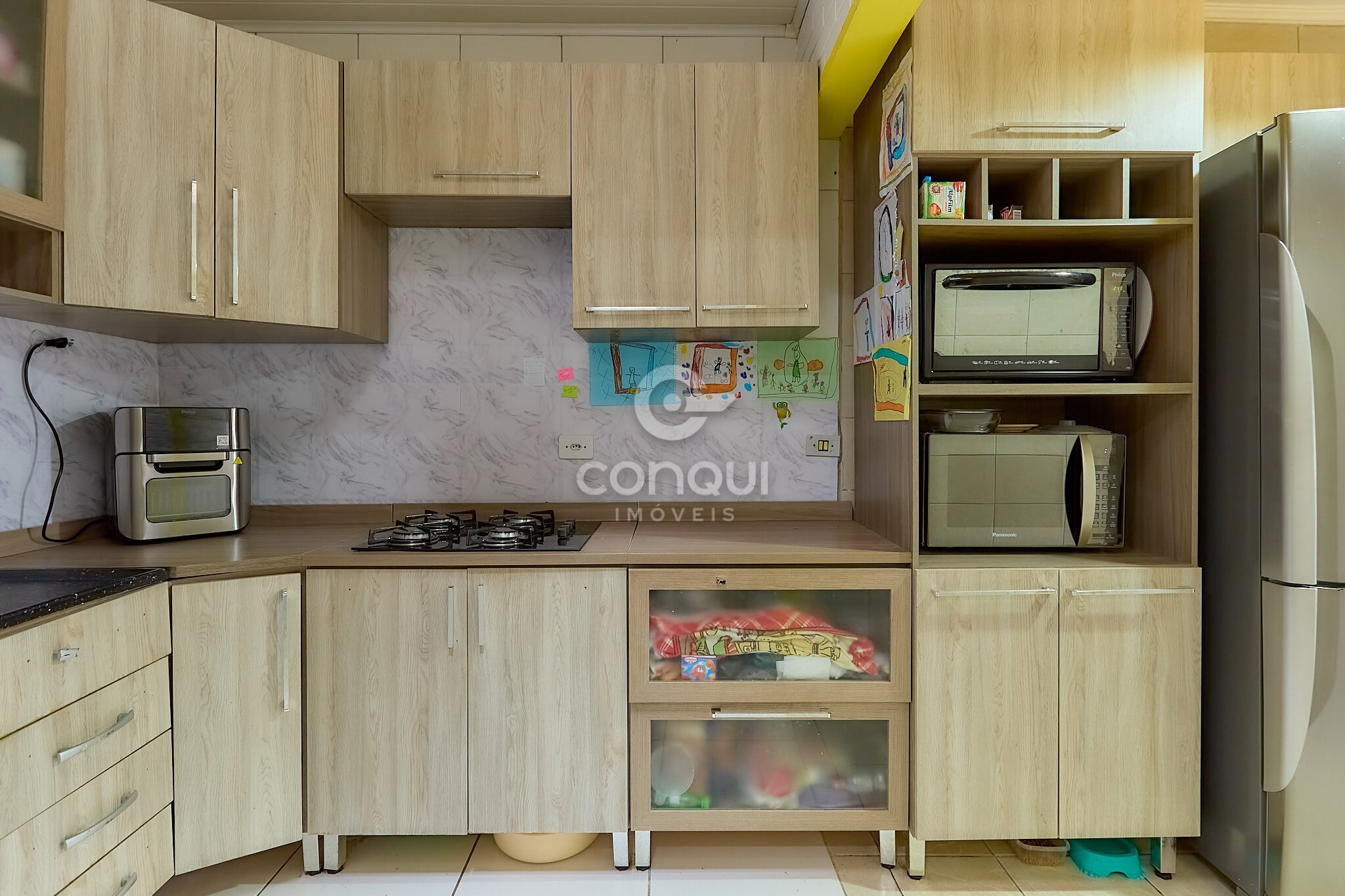 A casa conta com três quartos, sala aconchegante, cozinha prática com armários planejados, lavanderia,churrasqueira ideal para aproveitar bons momentos. Possui acabamento em gesso e janelas com venezianas integradas.