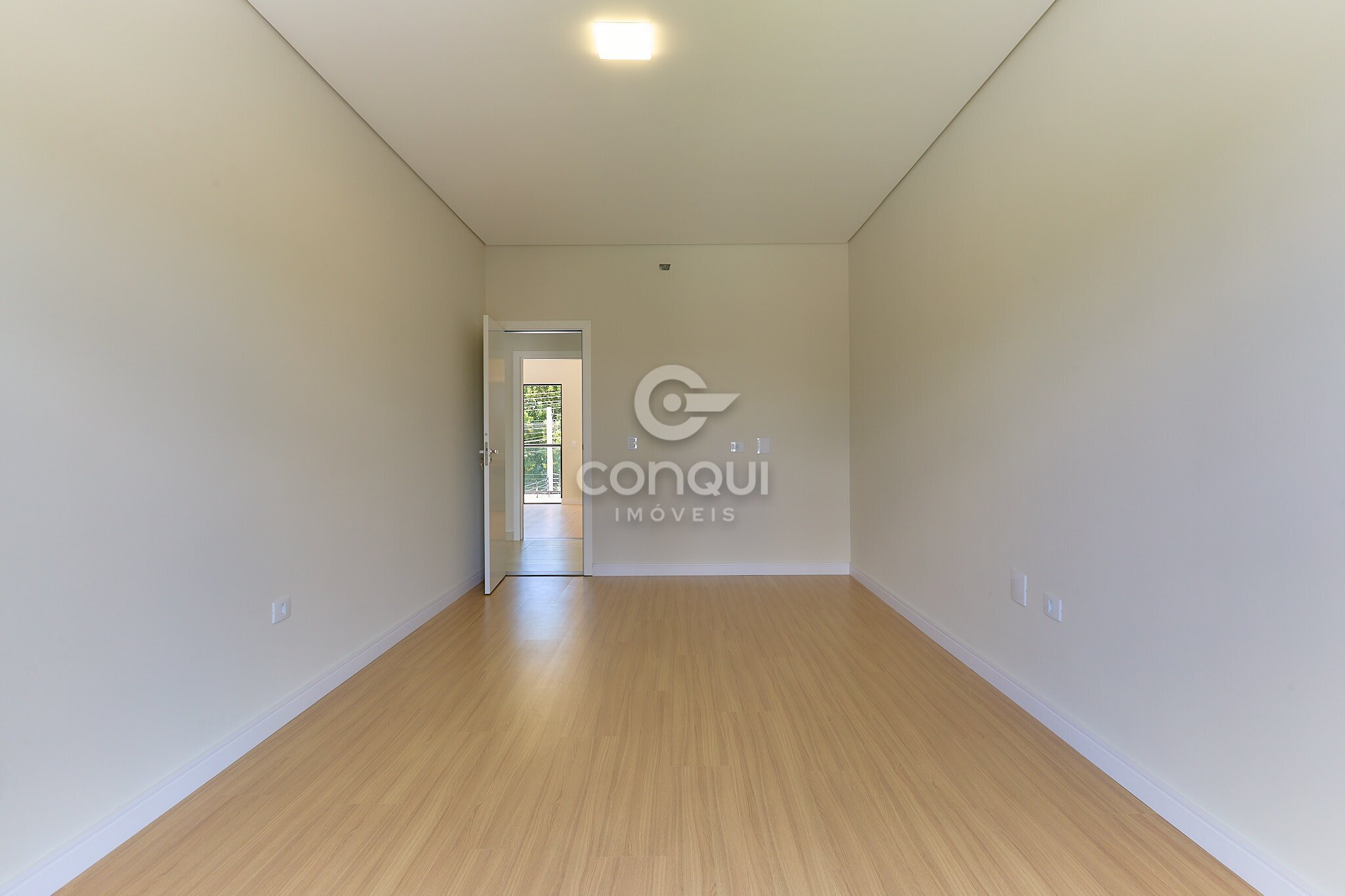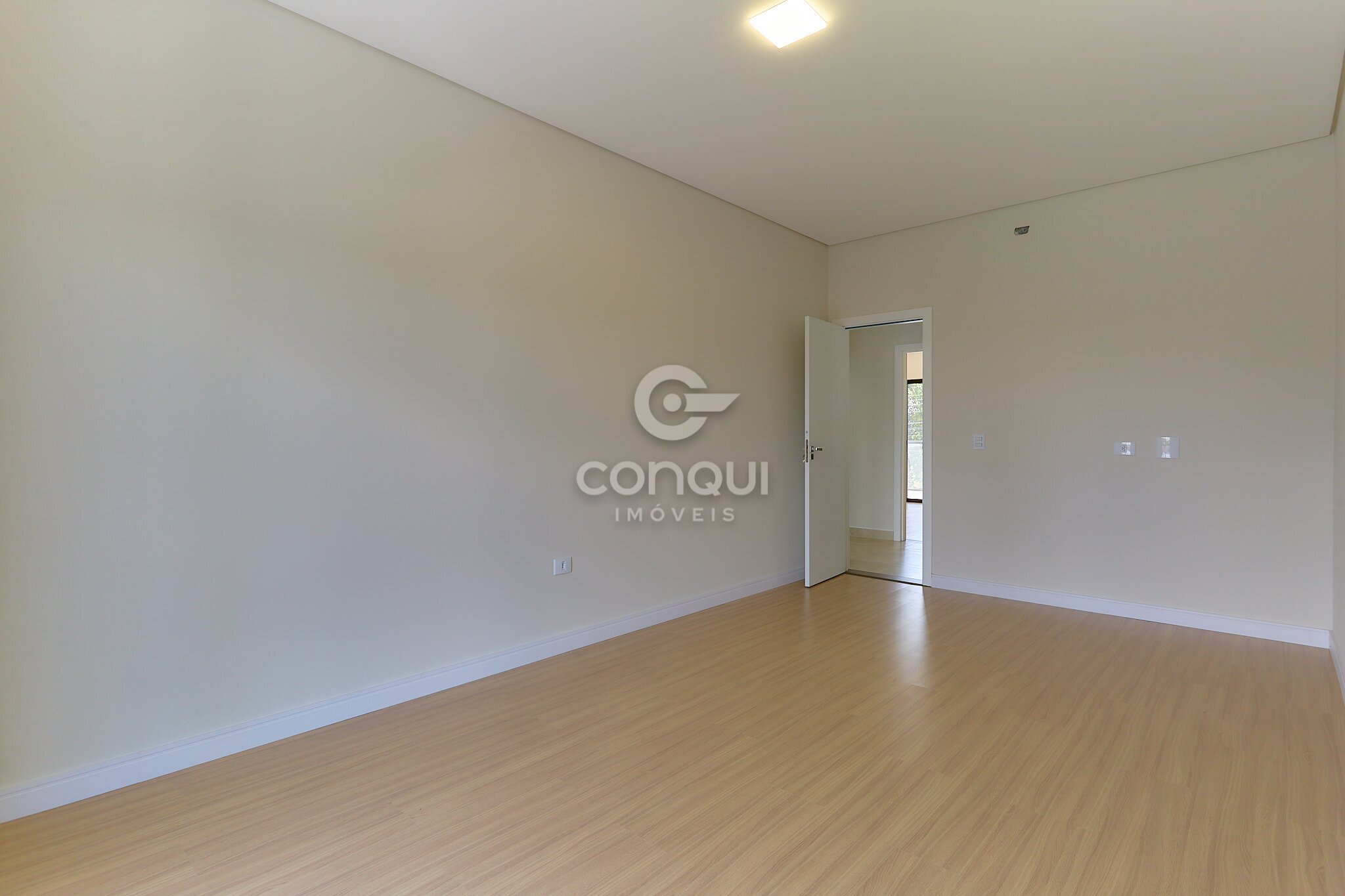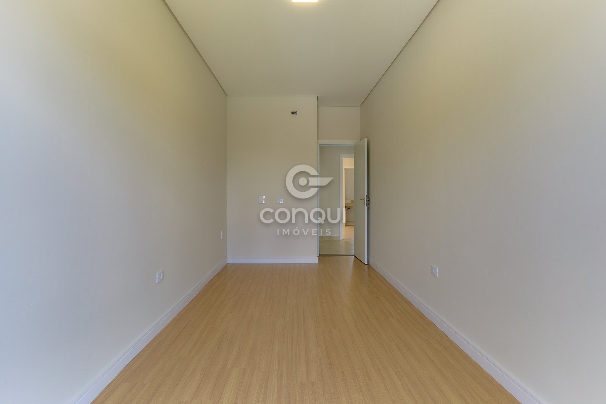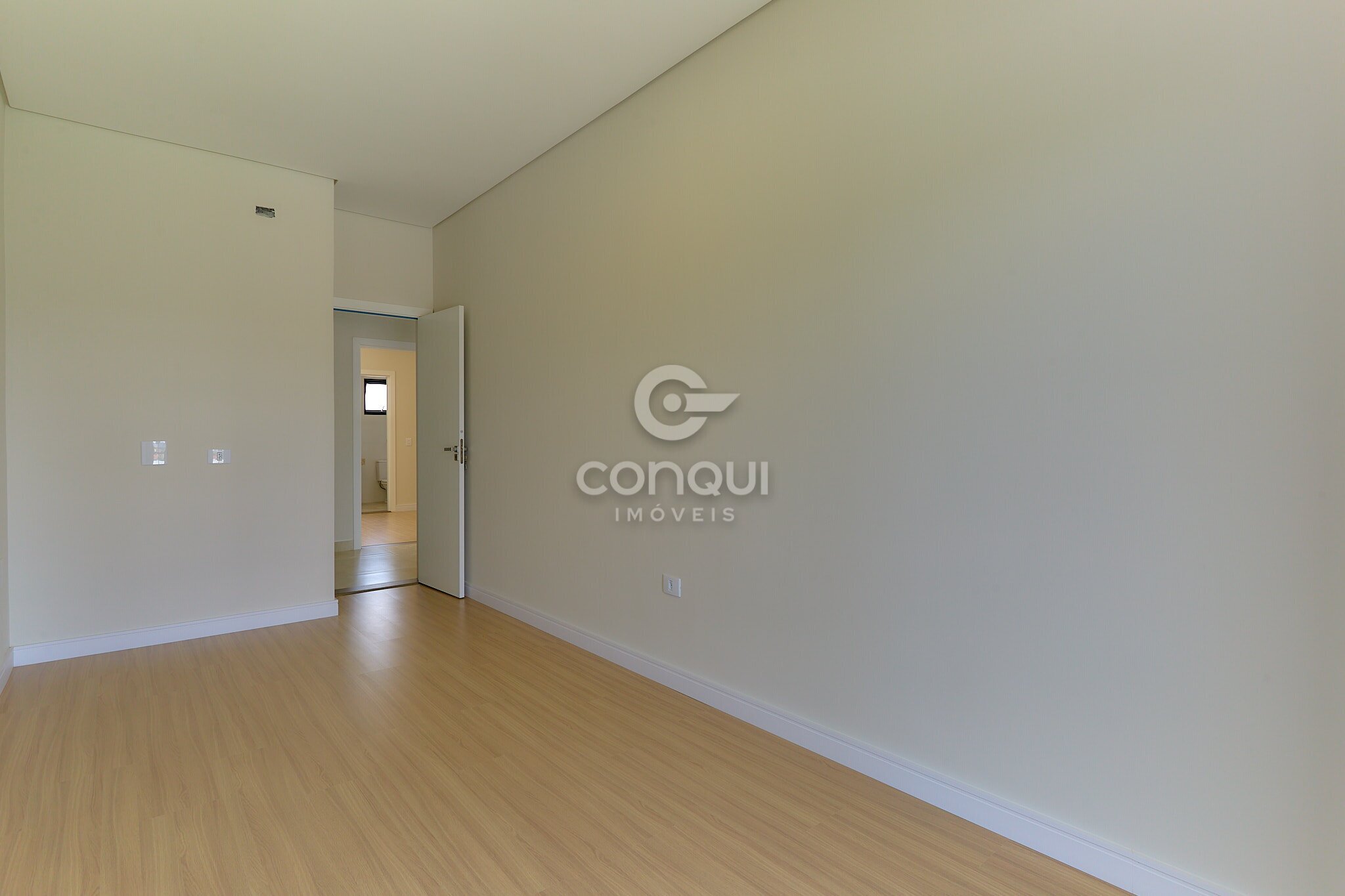 Suíte Master: Conforto absoluto com piso laminado, garantindo aconchego térmico e privacidade.