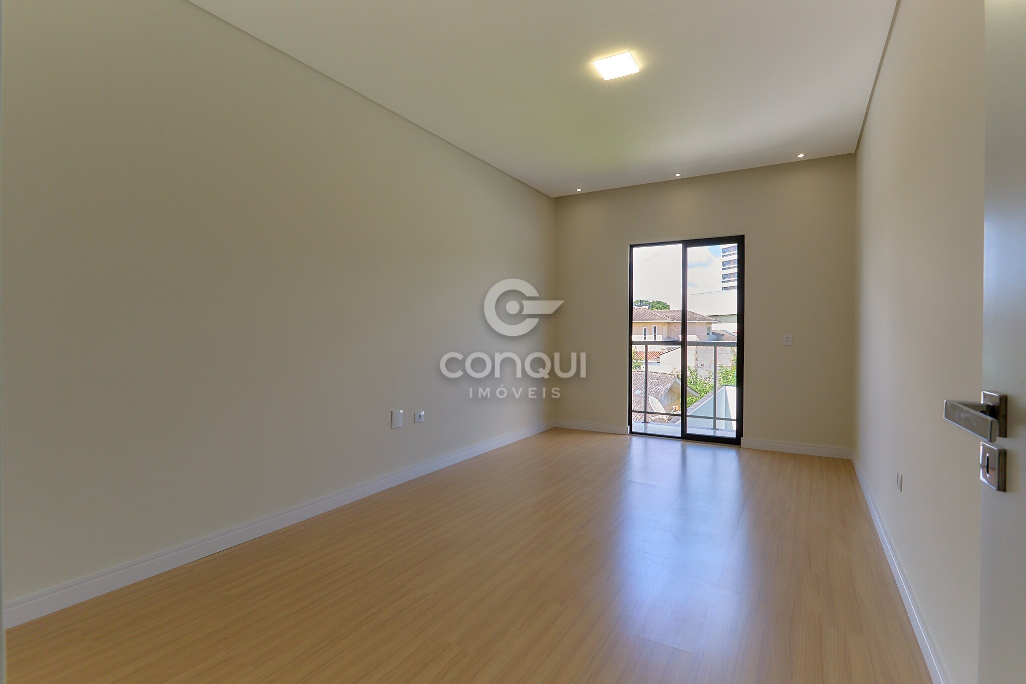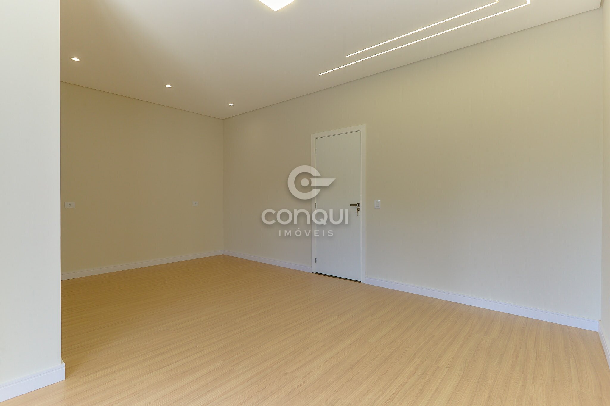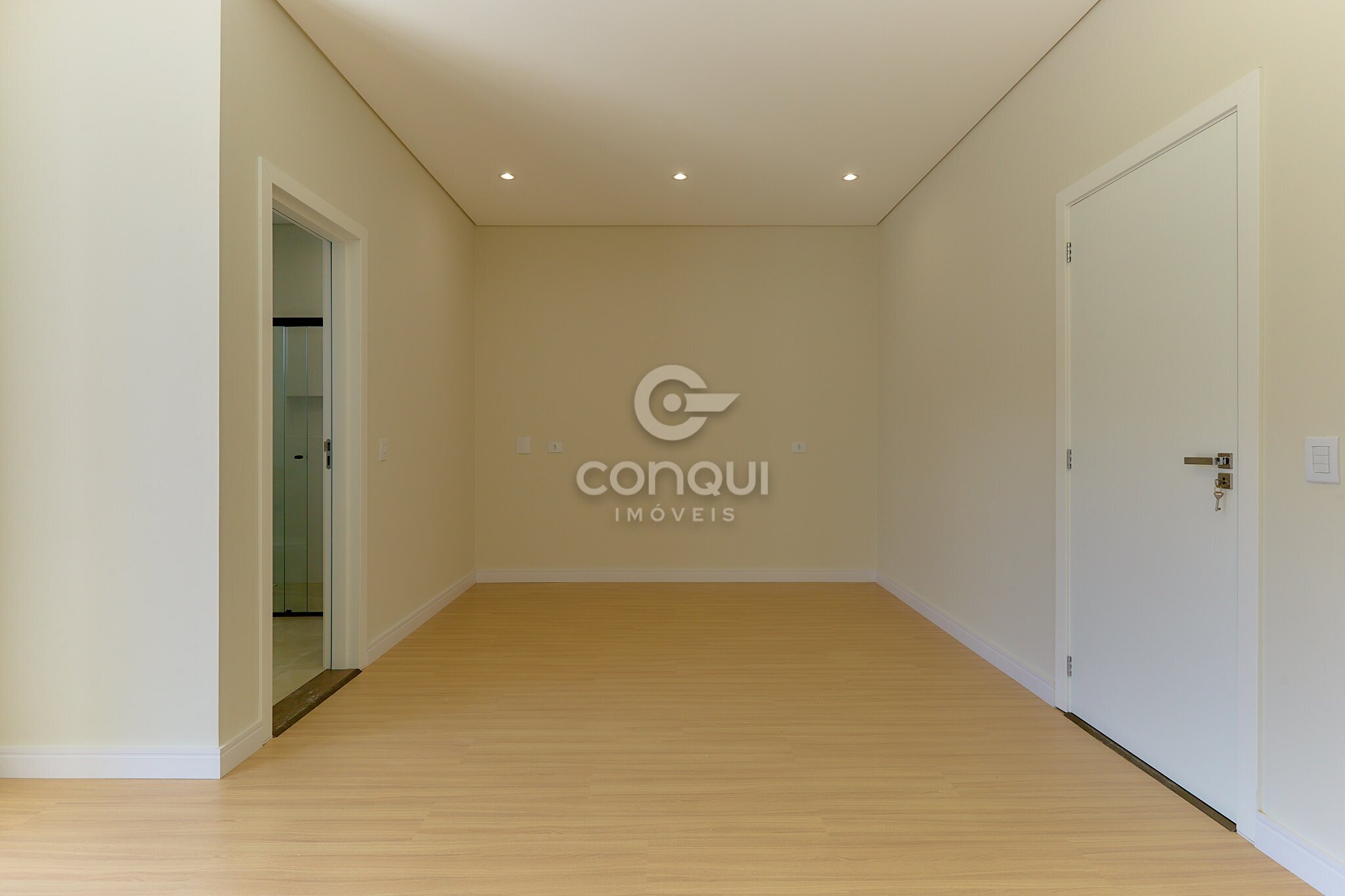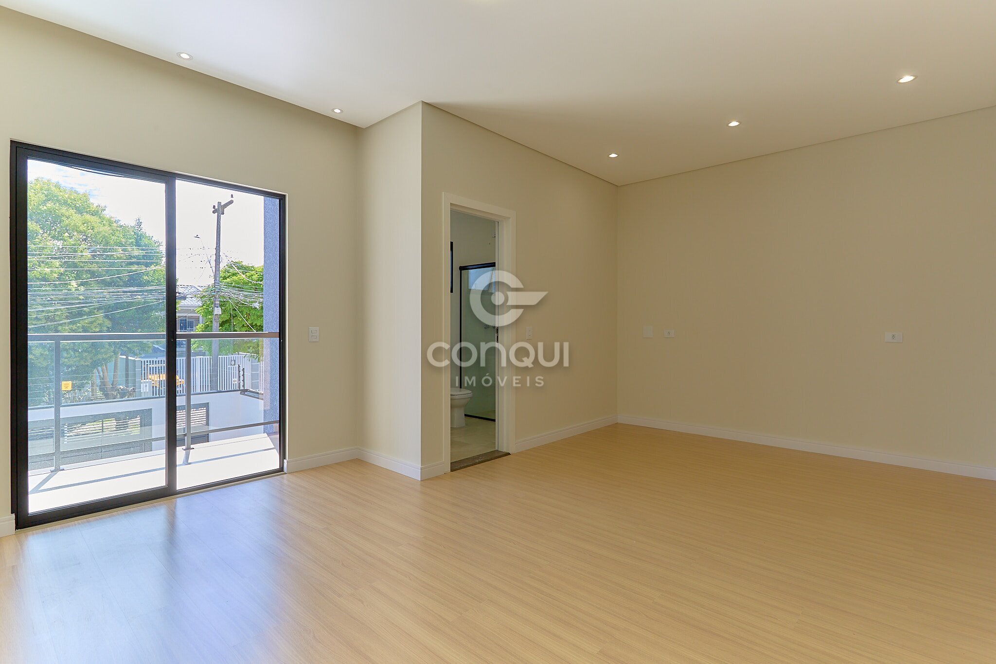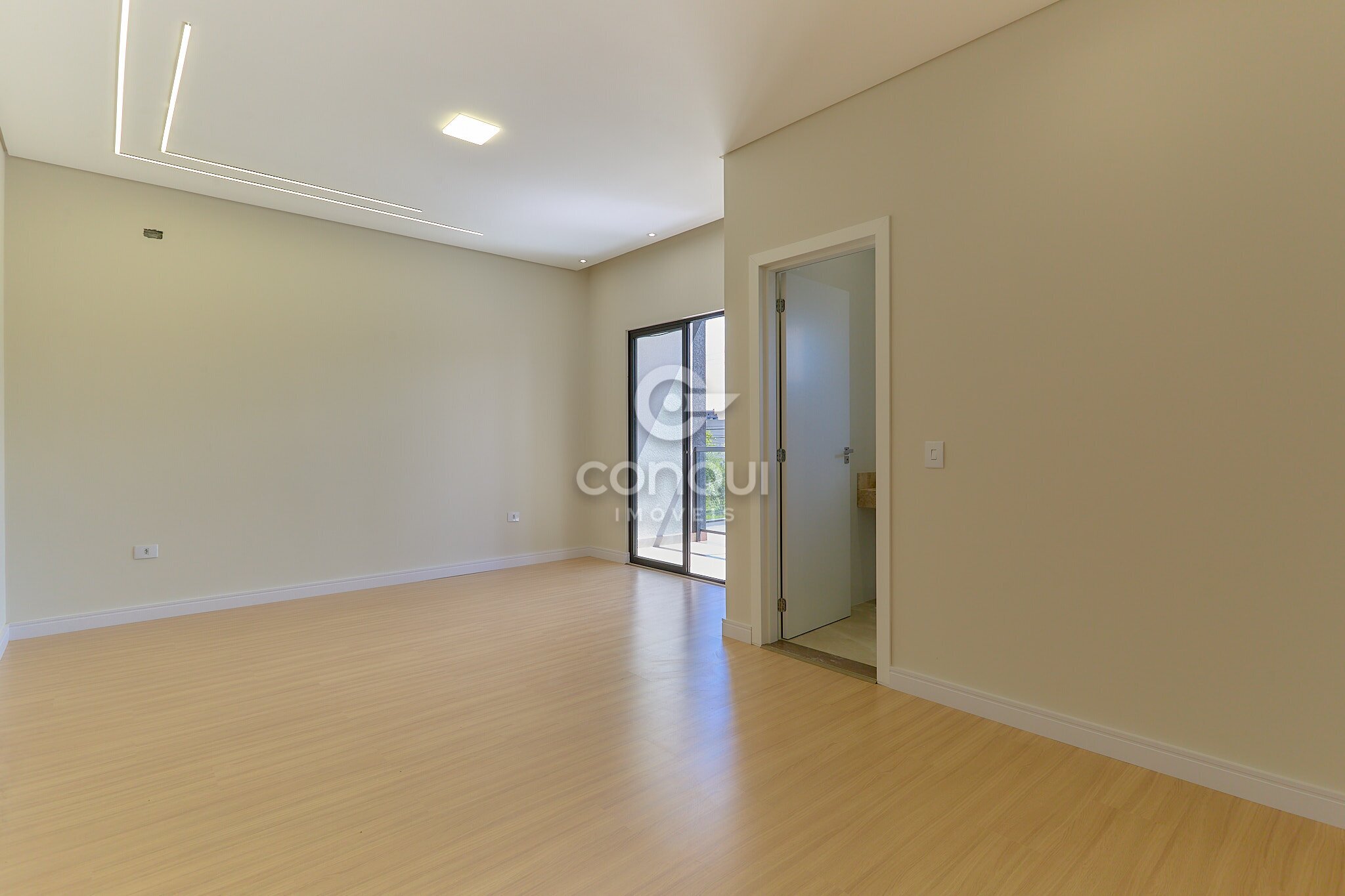 Suíte Master: Conforto absoluto com piso laminado, garantindo aconchego térmico e privacidade.