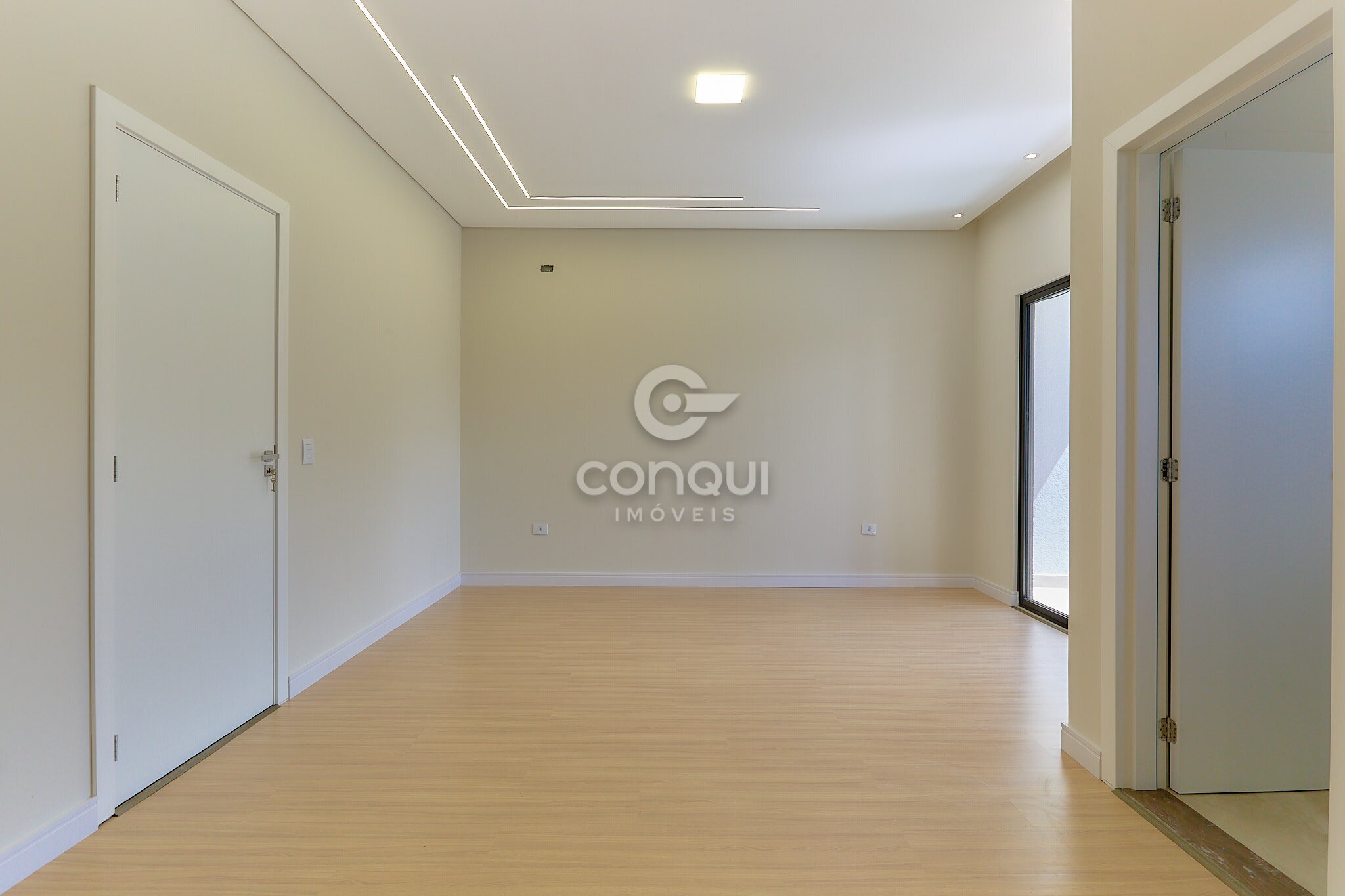 Teto com sancas em gesso e projeto de iluminação valorizado.